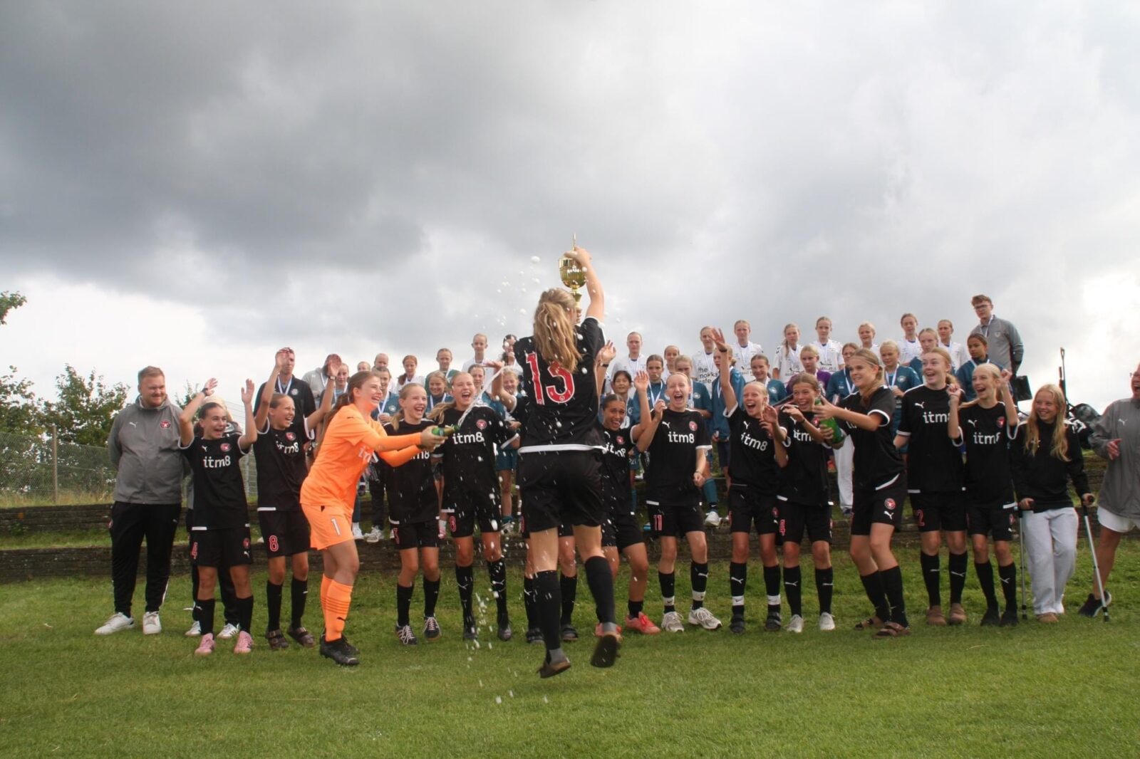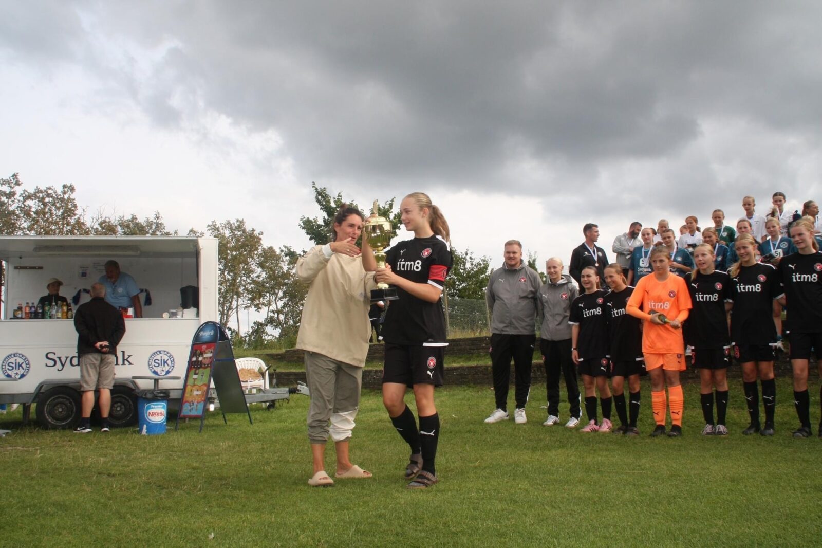 I finalen mod Fortuna Hjørring var der dog på ingen måde overskud til andet end selve kampen! Et hæsblæsende og tæt opgør, hvor der skulle et tofodsafsæt på en 3-4 meter til, før vi kunne heade os i front på hjørne ved Nanna Højriis Jensen (tidligere Mejdal-Halgård), inden Anna Lucia (fodboldopvækst på Guldminens linje) sparkede FCM på Guldkurs med sit flotte 2-0 mål.