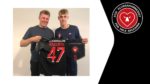 Inden FCM og OB forlod Tarm var der spisning i hallen og FCMs anfører Erik Sviatchenko overrakte en trøje med alle spillers autografer, selvfølgelig nummer 47 (Heiselberg) 😊 Her ses Frederik Heiselberg og hans gamle træner i Tarm IF, Finn Akselsen.