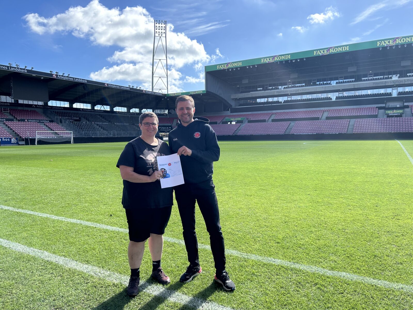 ”Det var næsten som at være julemand om sommeren”, fortæller Thomas Hammelev Larsen, leder af FCM Klubsamarbejdet, ”og det var skønt at opleve den store glæde, som gevinsten skabte hos Majken og hendes familie”.
