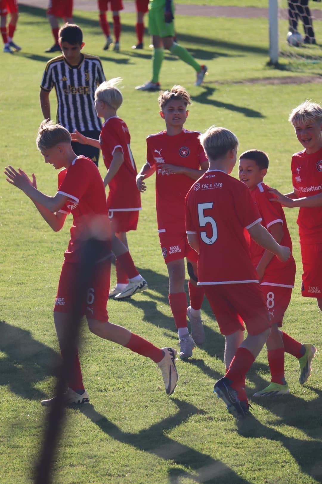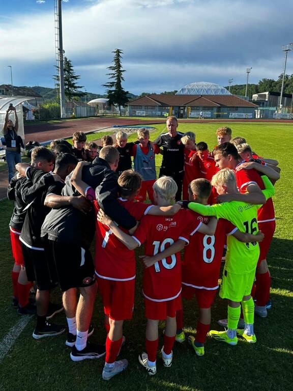 Fredag morgen bød på indledende del af gruppespillet. 8 puljer af tre hold, hvor placering 1 – 2 kvalificerer sig ind til ”guldslutspil”, mens tredjepladsen kvalificerer sig til ”sølvslutspil”. Vi var derfor tvunget ud i at skulle have et resultat med hjem allerede fra start af for at sikre os adgang til det sjove selskab de kommende dage. Dette lykkes heldigvis ved at vinde 2-1 over et regionalt Italiensk hold, der spillede med stor fysik og hvor de fleste tricks i bogen blev brugt. Alt i alt en bøvlet fodboldkamp og en relativt klassisk åbningskamp som vi meget fortjent fik tippet i vores favør.