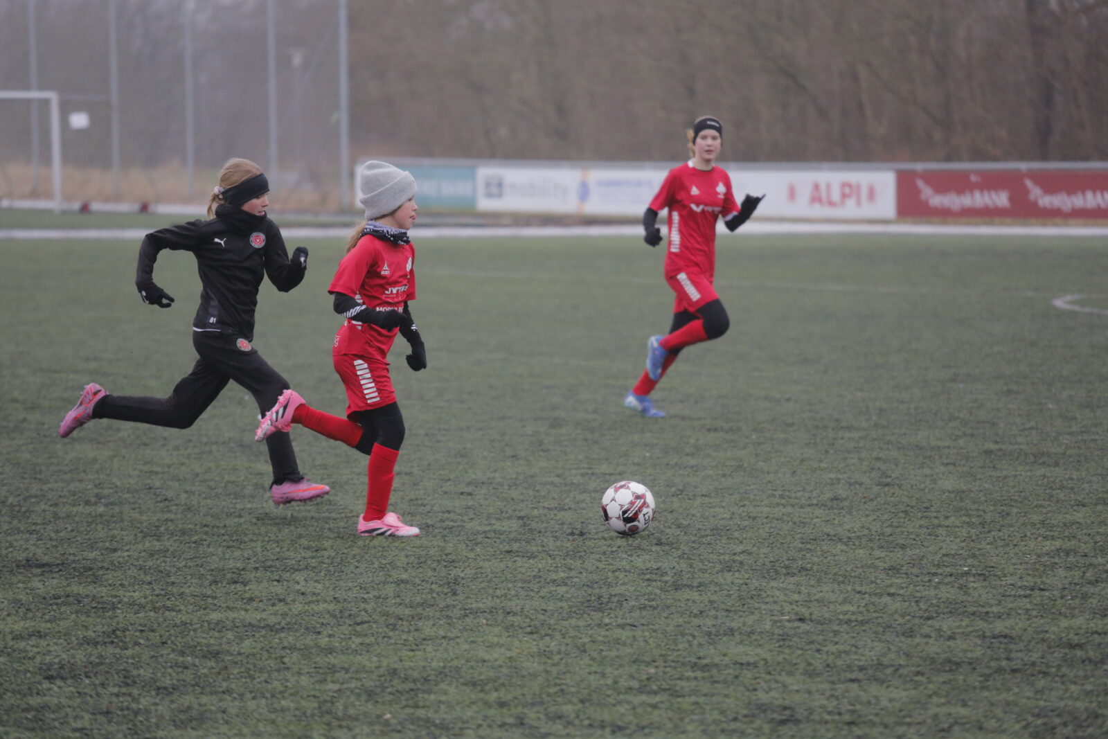 Søndagens træningskampe gav tæt trafik på kunstgræsbanerne i Hammerum IF og i Herning Fremad, hvor omkring 90 pigespillere og knap 200 drengespillere mødtes til masser af fodboldkampe i det kolde vintervejr.