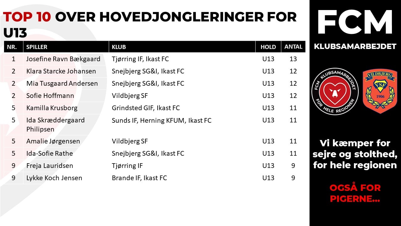 Det endte ud i både fælles- og årgangsopdelte ranglister, hvor man dels kunne se, hvilke spillere, som kunne tage flest jongleringer, men hvor man også kunne se, hvilke spillere som procentvis havde forbedret sig mest. Senere kom der også jongleringsrangliste med headninger samt rangliste i headninger sammen med et familiemedlem. På den måde fik alle pigerne mulighed for i en eller anden sammenhæng at se sit eget navn højt på en rangliste og samtidig var der lagt op til masser af sjove fodboldtimer hjemme i familieisolationen.