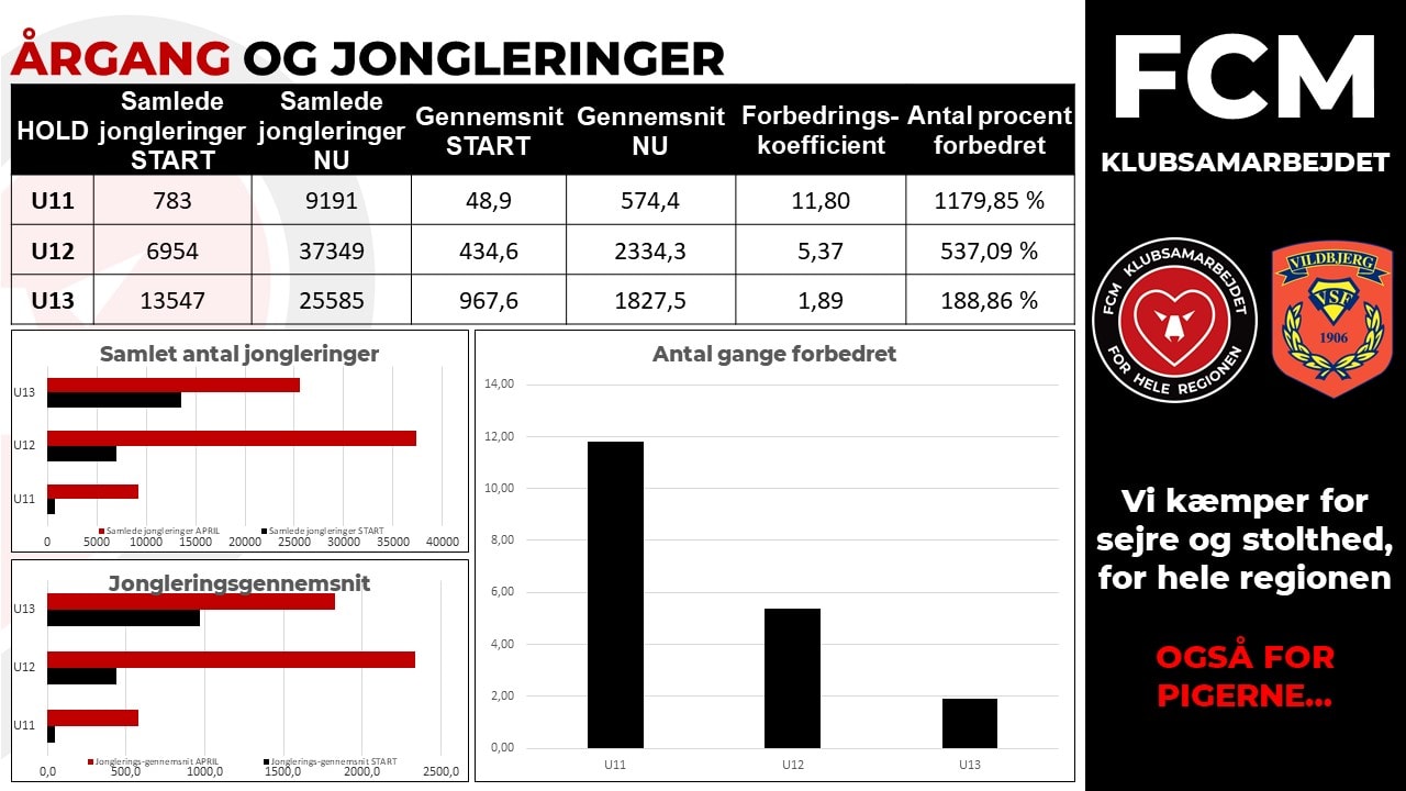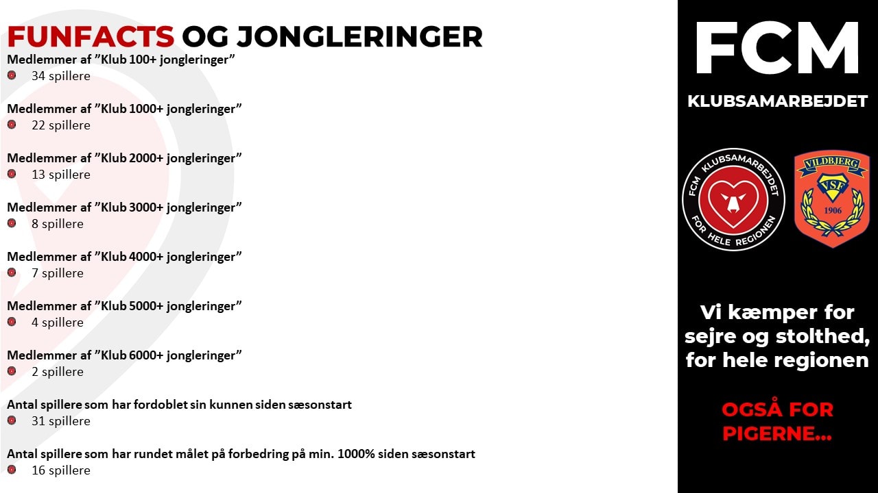 Sidste sommer blev der sat et fælles mål for alle spillerne fra U11 til U13, så de ved sæsonens afslutning skulle kunne tage 10 gange så mange jongleringer, som ved sæsonens start. På den måde kunne man også motivere de spillere, der ikke fra starten var så gode til at jonglere.